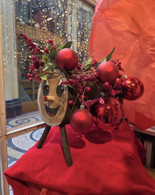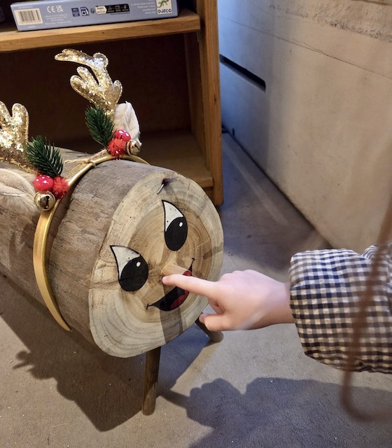 Venez toucher le bout du nez du Tió, une bûche creuse à la tête souriante.