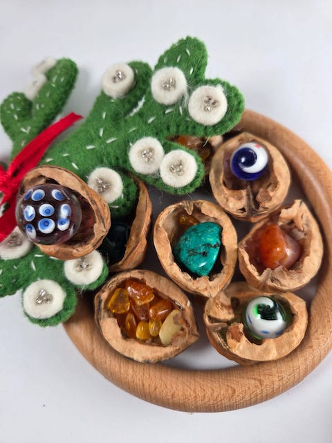 Il est un jeu de fin d’année que j’aime préparer en cachette pour mes familiens, celui des noix surprises !