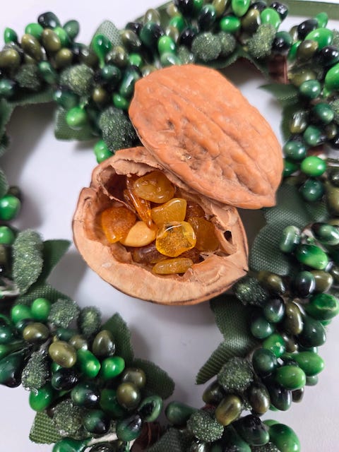 Est-ce qu’elle contiendra une turquoise ? Quelques grains d’ambre ? Une bille de collection …. Vite, vite on se passe le casse-noix et …. Ke ça craque, et Ke ça s’amuse à comparer ses trésors de noix surprises !