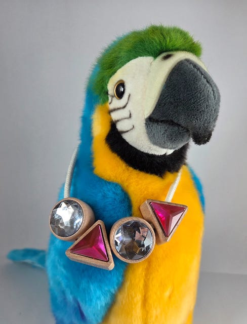 Comme la Castafiore dans le fameux album de Tintin, “Les bijoux de la Castafiore“, je m’écrie « Ciel ! Mes bijoux ! » en constatant que durant la nuit l’ara bleu en peluche du Si Tu Veux en a piqué certains dans la shop.