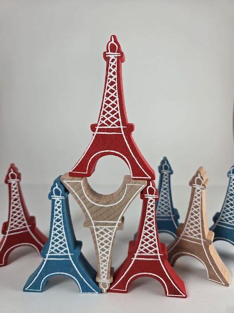 Oh comme c’est joyeux de rencontrer ces tous-touristes des 4 coins du monde qui prennent du bon temps d’amusement chez le Si Tu Veux… avec un jeu de Tour Eiffel, souvenir de Paris, qui tombe à pic !
