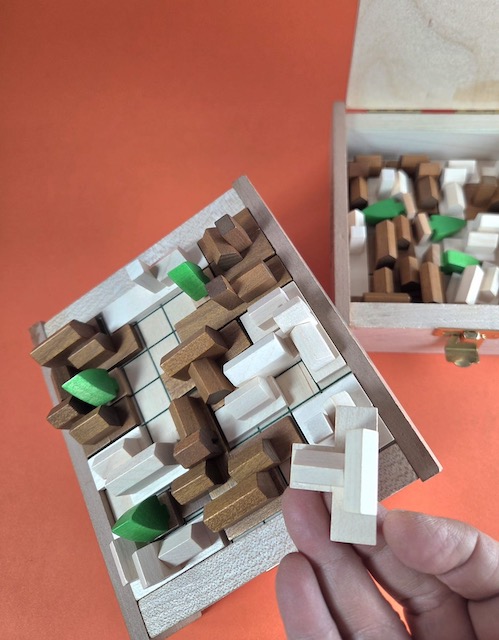 Tout beau ce petit coffret de bois pour un jeu de logique à deux !