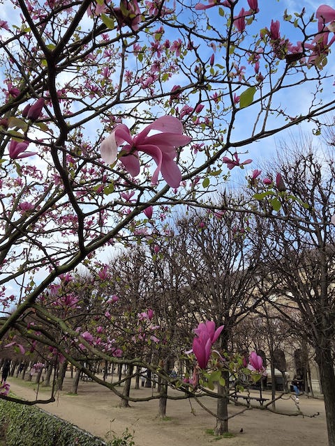 Quel plaisir de passer comme chaque année dans les jardins du Palais- Royal pour admirer les magnolias en fleurs…