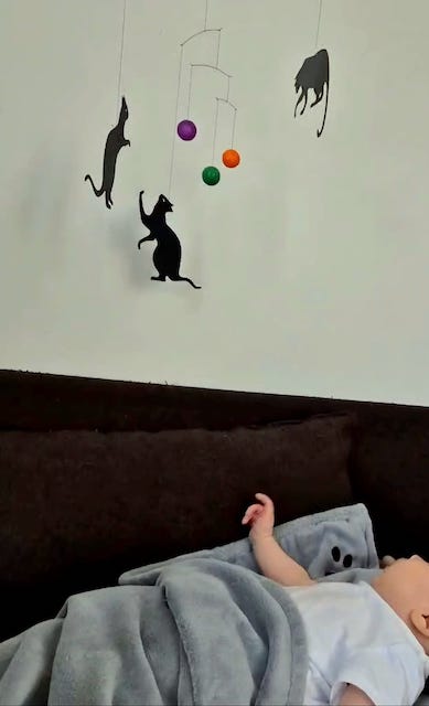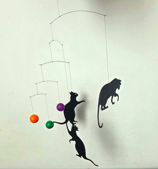 Sa passion pour le mobile aux chats est topissime ! Bien qu’il ne soit pas le seul … un chat coquin est à surveiller !