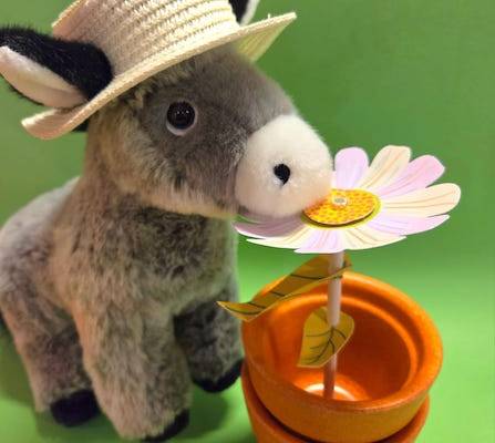Aujourd’hui, c’est ce charmant âne en peluche qui est en charge de rendre hommage aux bleuets, aux coquelicots et à