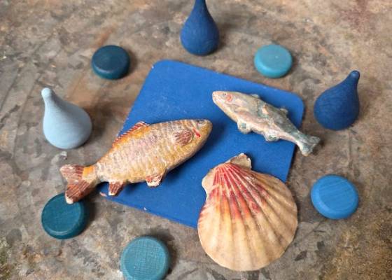 Quelques “loose parts“ et poissons anciens du Si Tu Veux pour sensibiliser chacun-chacune à ce foutu plastique qu’il faut, dès