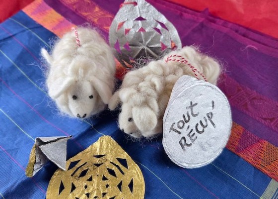 Oh qu’ils sont jolis mes opercules de pot de yaourt quand j’en fais des boules de Noël ! Des décorations tout