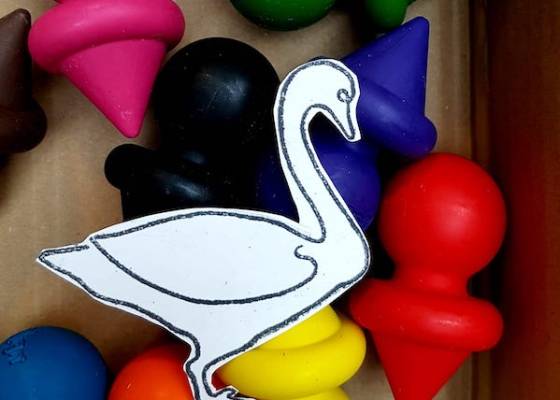 Eh oui j’avoue, j’ai piqué les crayons toupies des tout petits du Si Tu Veux pour mon dessin d’oie, ceux