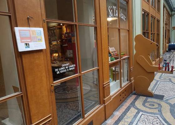 Cette affichette-là est désormais en bonne place à l’entrée du magasin de jouets de la galerie Vivienne. Pour que les