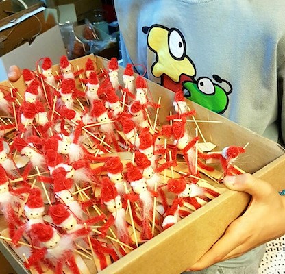 Ça y est, les pochettes surprises de Noël sont prêtes ! Gaies et colorées, garnies de loose parts et de porte-bonheurs,
