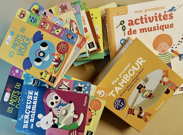 Des livres sonores et de premières activités de musique…