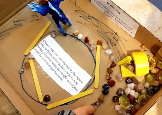 Comme d’hab’de par ici, l’activité est facile à organiser. On chope quelques photos de paysages dans des magazines. Elles sont