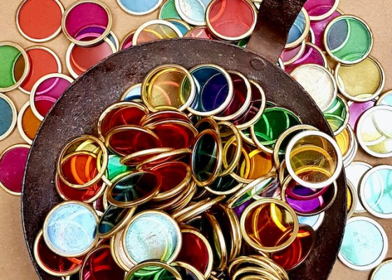 Je m’amuse de voir qu’à propos de ma “monnaie de fée“, ces rondelles colorées encerclées de métal juste posées dans