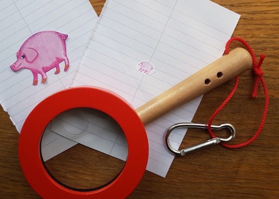 Aujourd’hui voilà que je chope dans la boutique une maxi loupe en bois Goki pour une activité Montessori régalante… Si