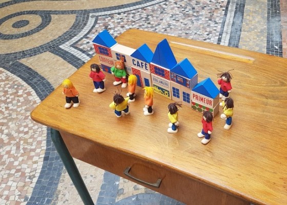 J’ai désormais mon “bureau d’étude de joujooooo“ dans la galerie Vivienne… posé là, juste devant la boutique ! Voyons si ces