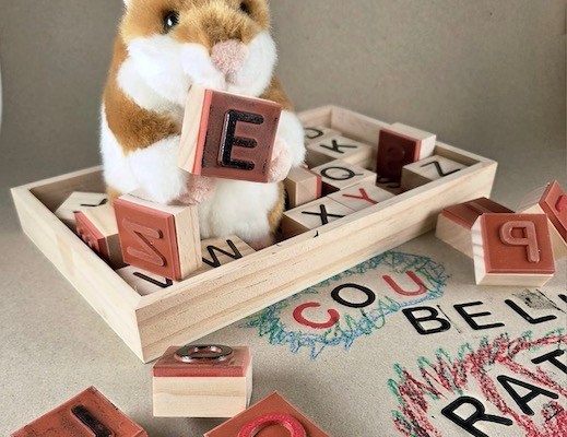Je m’inspire du “sieur “ Perec pour un jeu de chasse aux mots… sans E, z’avec les tampons alphabet du