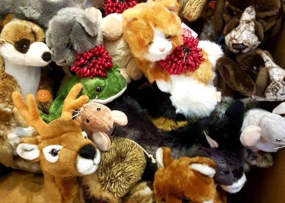 Ici les animaux en peluche sont considérés à l’égal des vrais, donc bien traités. Chiens, chats, hérissons, lapins, grenouilles, renards…