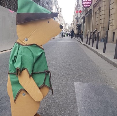 Dans la rue Vivienne je rencontre un ours déguisé en Robin des Bois. Tout fiérot il me dit : « Je me suis